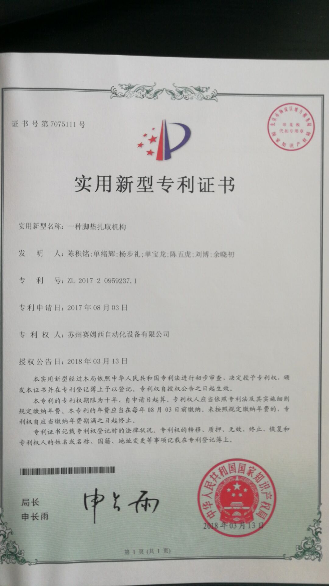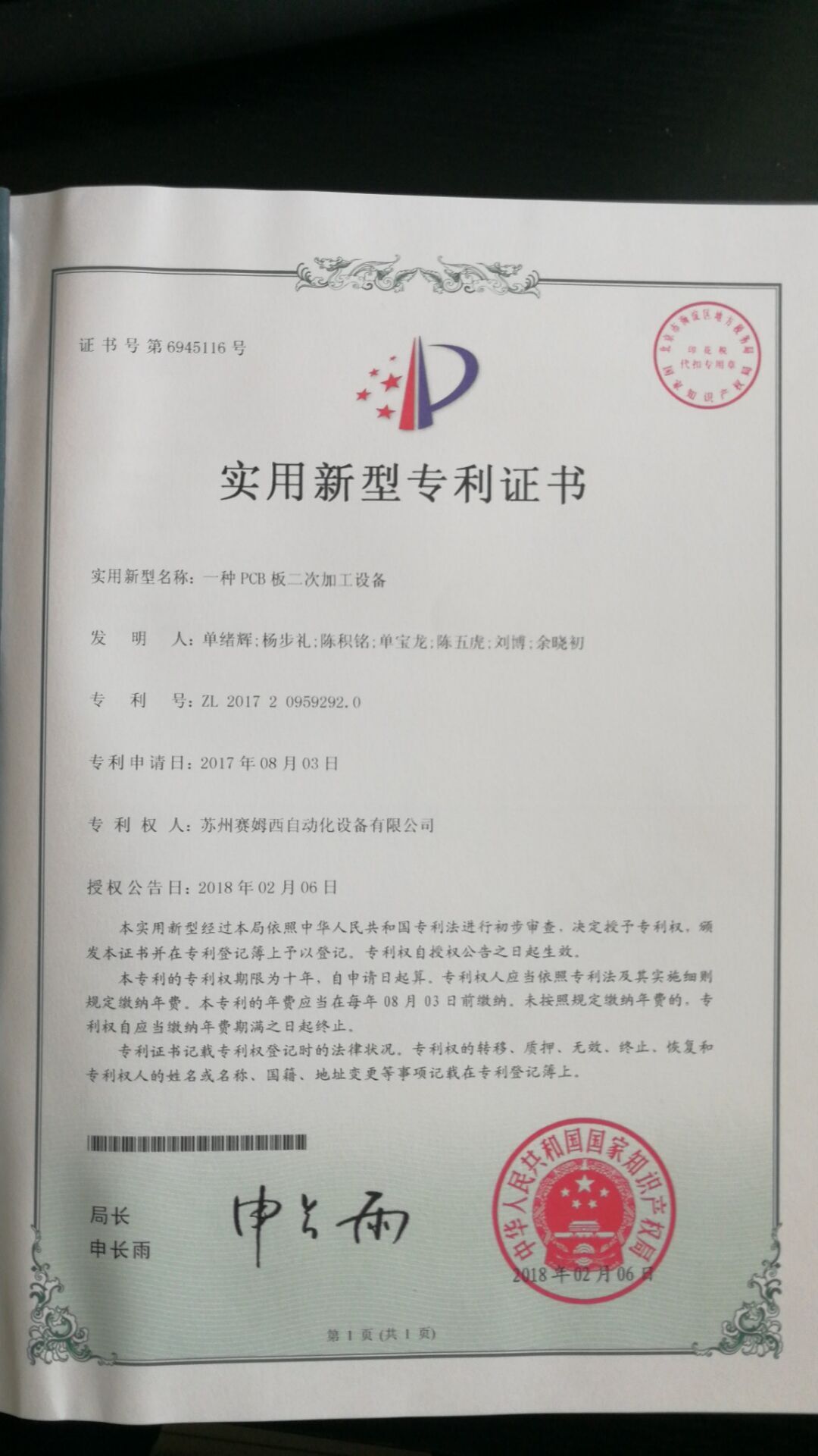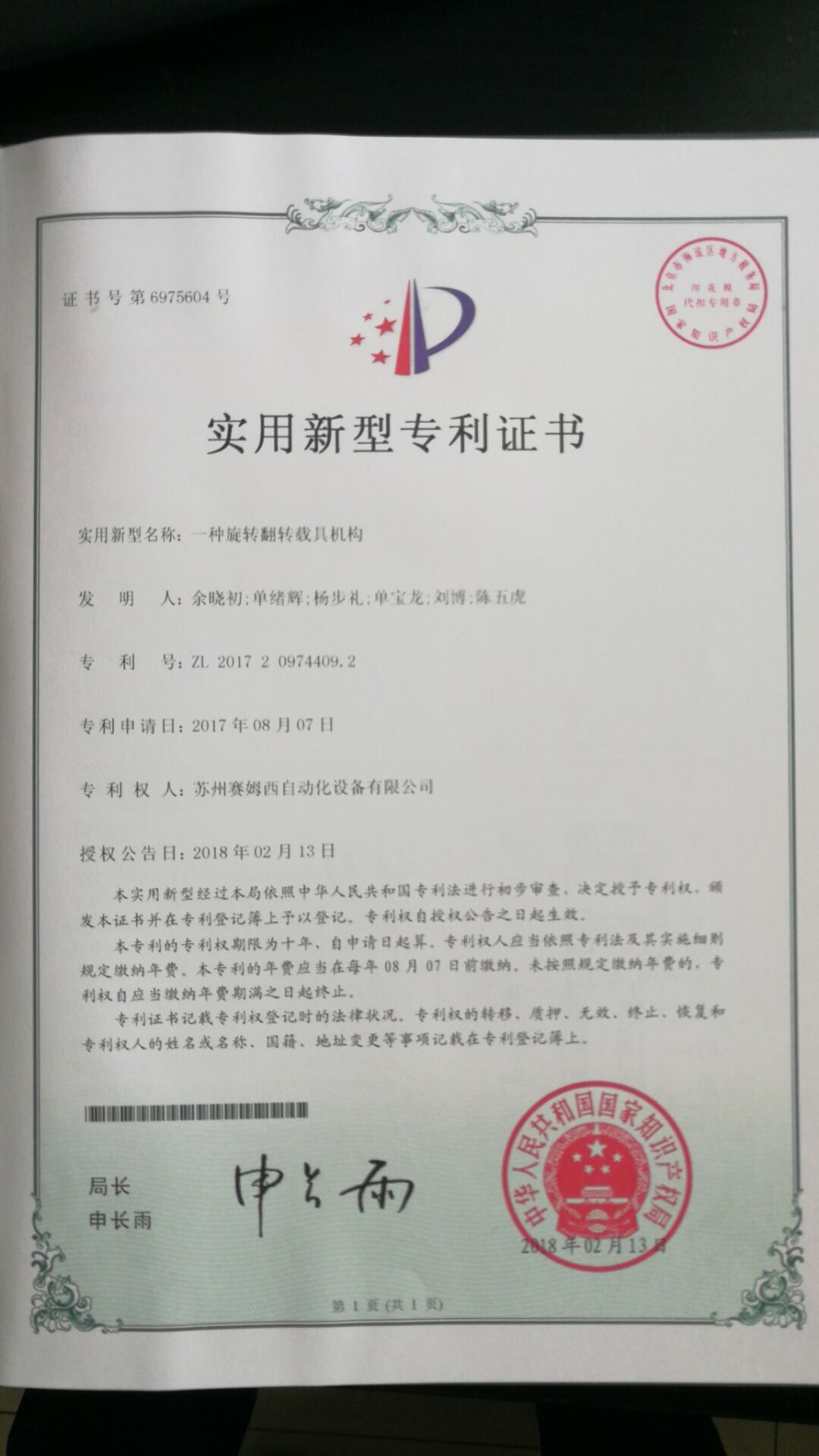 • 專利證書