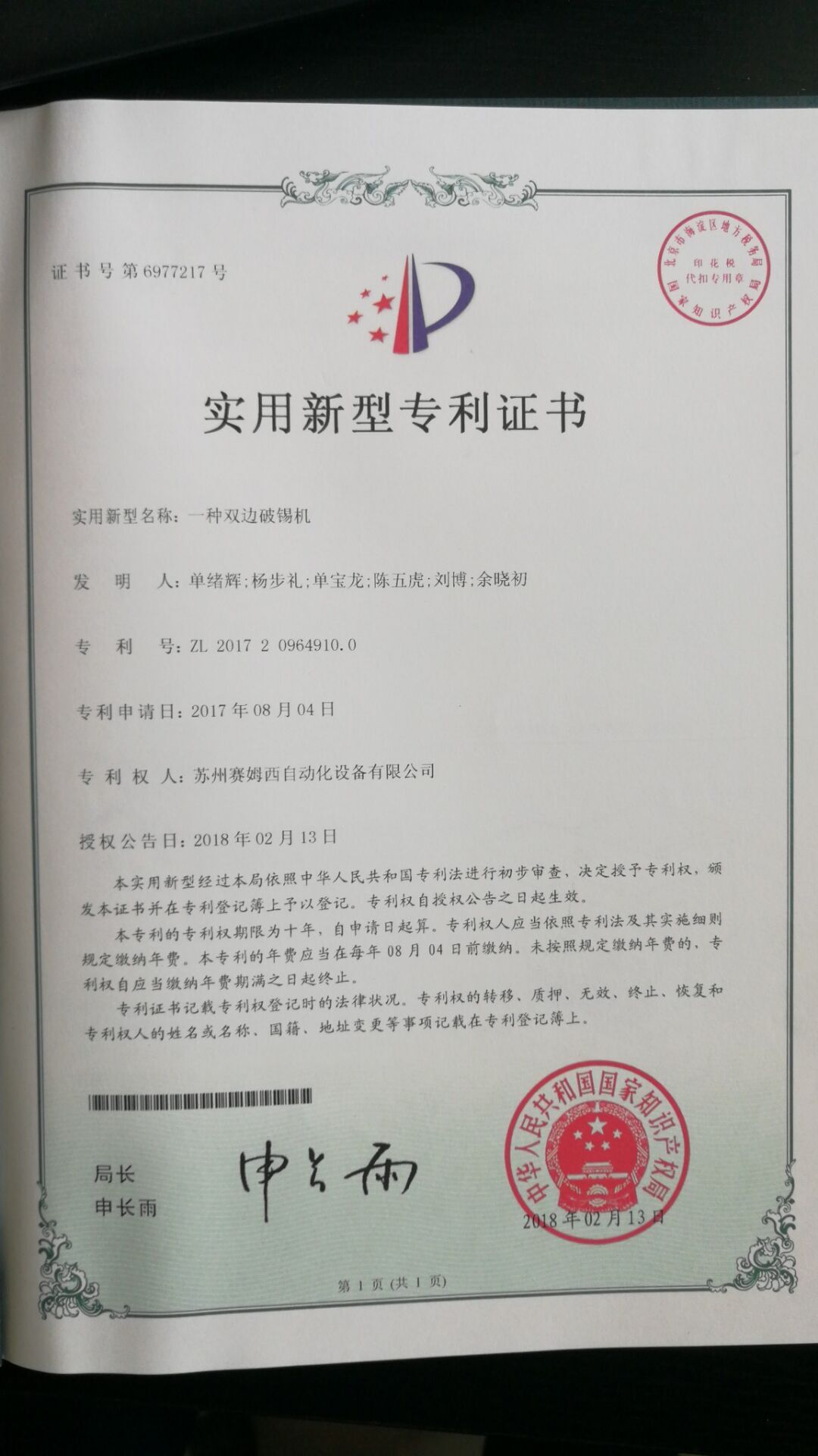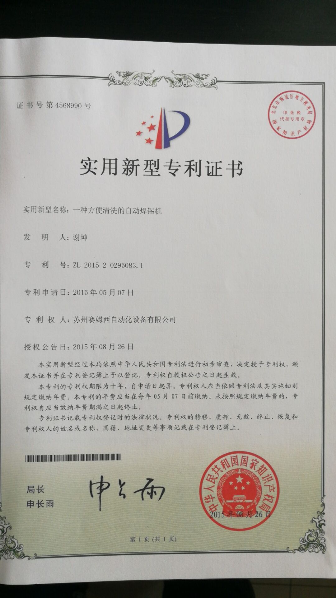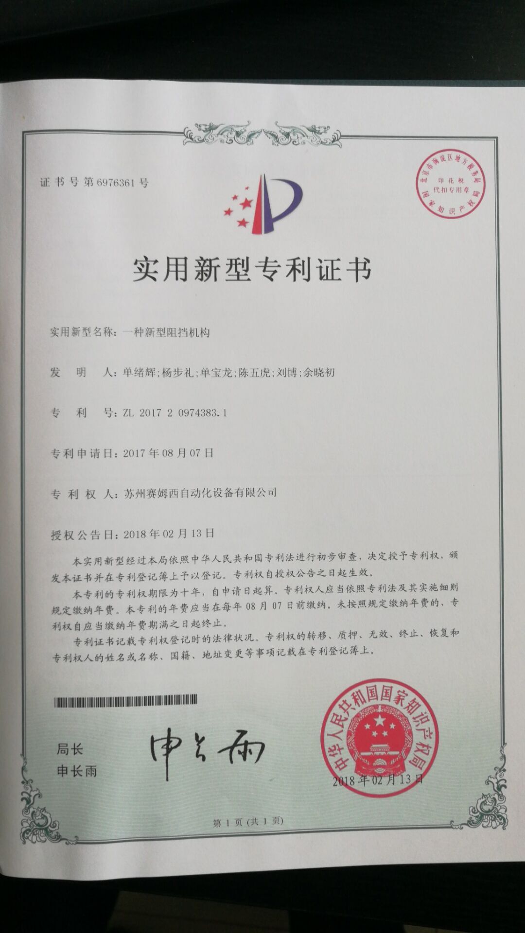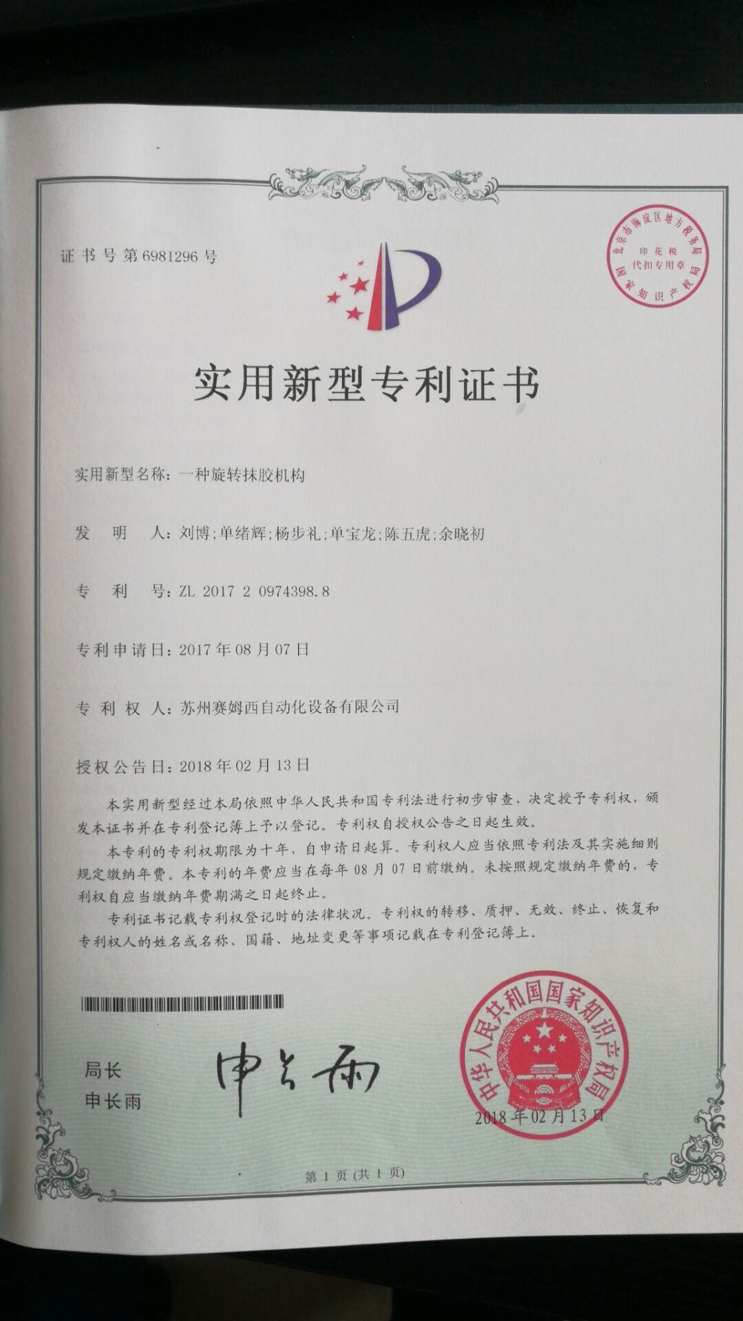 • 專利證書