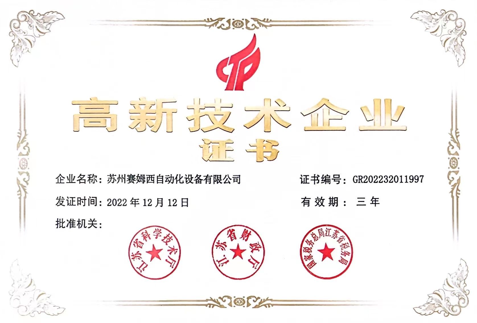• 高新技術企業證書